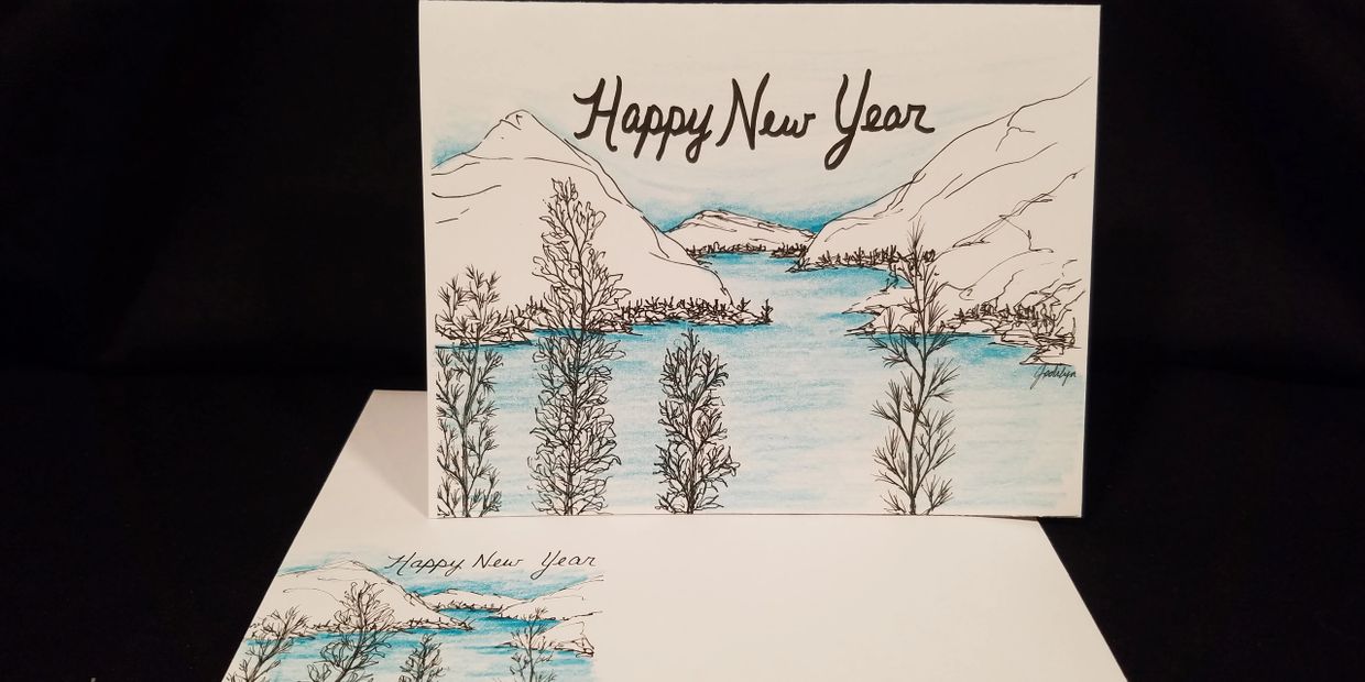 5 cards with matching envelopes printed from an original design of your choosing. Upgrade to our service for $5 and we will hand address the cards and mail them out for you as well.